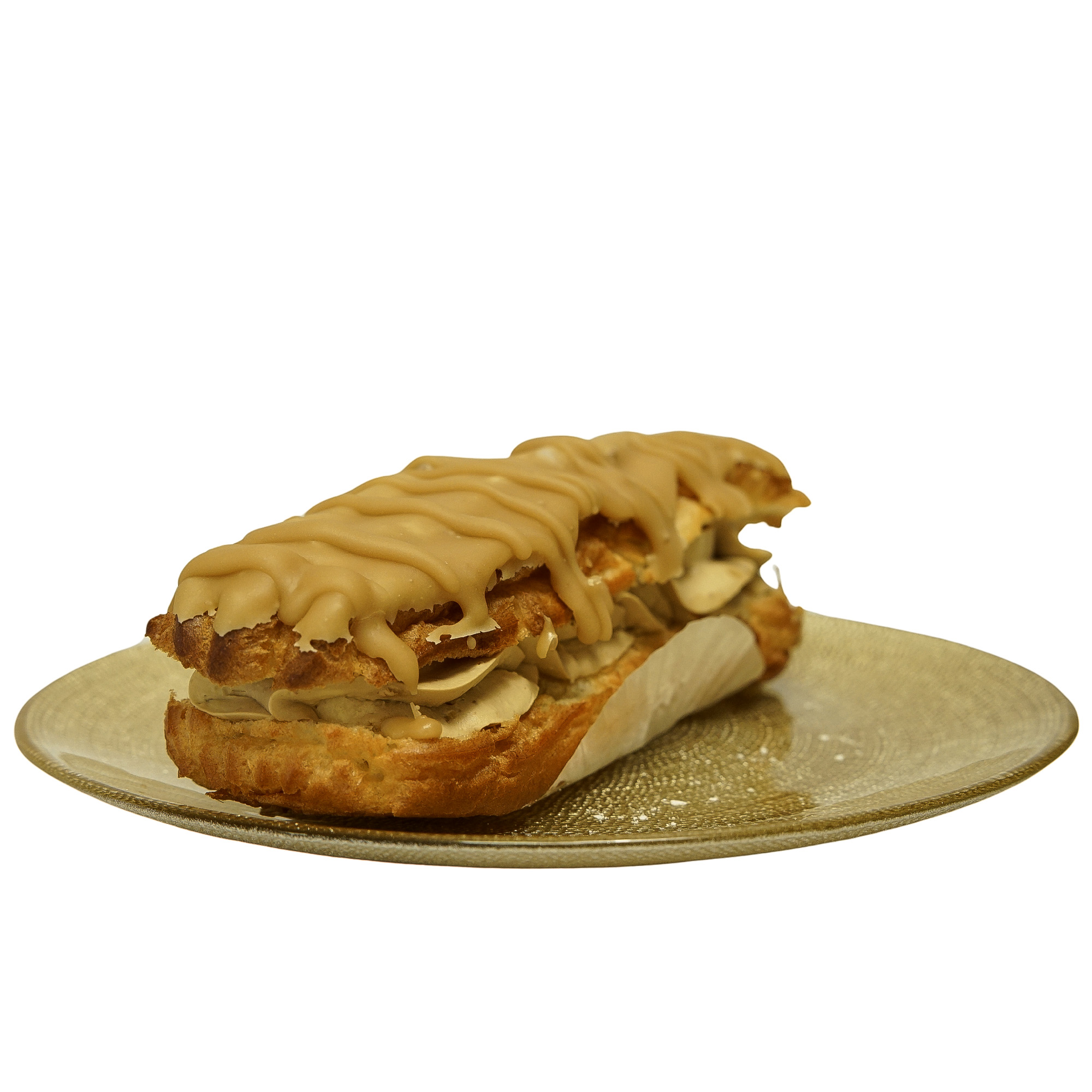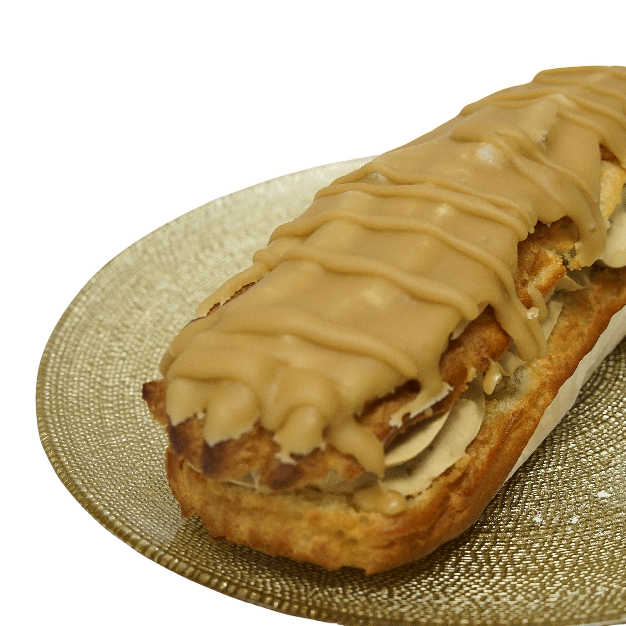 Este o deliciosa varianta care adauga note aromatice intense de cafea la clasicul ecler. Blatul sau pufos si aerat este umplut cu o crema fina, iar glazuta exterioara este preparata cu cafea instanta, oferind o imbinare subtila de dulceata si amareala distinctiva a cafelei.Aceasta reinterpretare aduce o nota rafinata si stimulanta la experienta traditionala a eclerului, fiind perfecta pentru iubitorii de cafea.