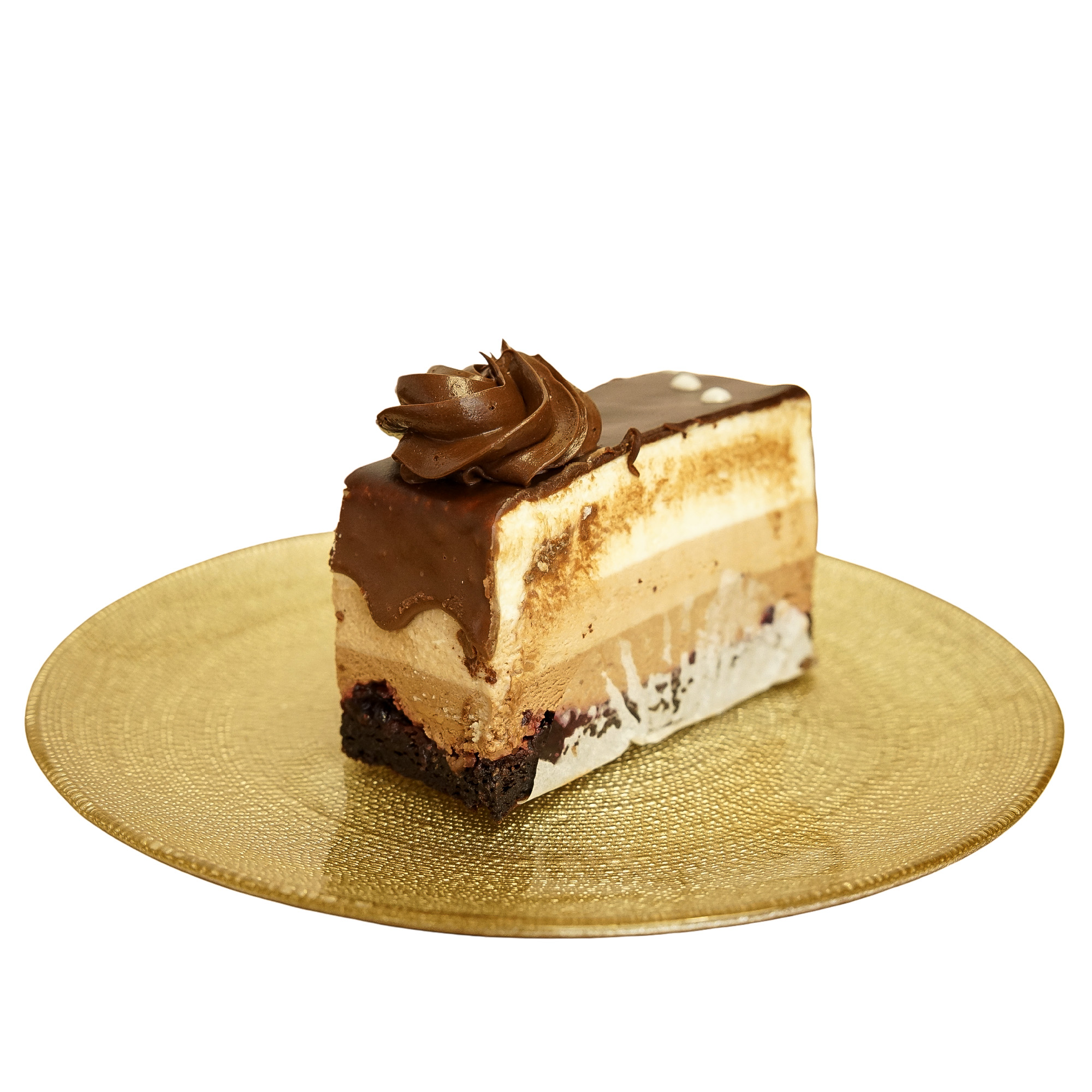Incepand cu un blat delicat cu alune caramelizate si fructe de padure, te vei bucura de primul strat de mousse, unde ciocolata neagra belgiana adauga o nota intensa si rafinata. Urmeaza mousse-ul cu ciocolata cu lapte, aducand o dulceata catifelata, iar in final, mousse-ul cu ciocolata alba completeaza experienta cu o finete delicioasa. O prajitura care aduce impreuna cele mai bune nuante ale ciocolatei in fiecare stratura.