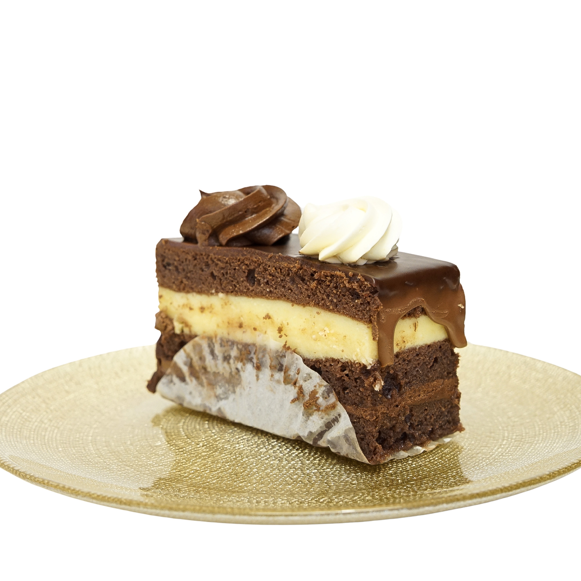Cu blat pufos de cacao insiropat reprezinta o combinatie delicioasa de arome si texturi. Blatul moale si aerat de cacao adauga o nota intensa si bogata la aceasta prajitura, insiropat pentru a pastra prospetimea. Ganache-ul de ciocolata belgiana aduce o decadenta starturilor, oferind o textura catifelata si o aroma profunda de ciocolata. Crema de vanilie completeaza armonios cu dulceata si finetea sa, creand astfel o prajitura echilibrata si delicioasa, perfecta pentru iubitorii de ciocolata si vanilie.